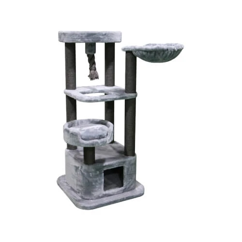 Sieht dieser Kratzbaum nicht wunderbar weich aus? Der Kratzbaum Savannah von Adori besteht rundherum aus herrlich weichem Plüschstoff. Ihre Katze wird überall einen schönen Schlafplatz finden. Am Boden ist eine dunkle Höhle, in der Ihre Katze ungestört ihr Nickerchen halten kann. Außerdem gibt es drei Körbe zum Schlummern. Unter dem oberen Korb hängt noch ein dickes Seil. Es bietet, wie auch die Sisalstämme, zusätzlichen Spiel- und Kratzspaß.