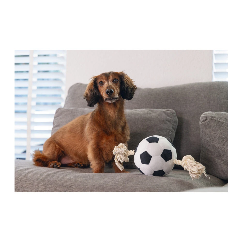 Der Beeztees Fußball mit Seil ist ideal für verschiedene Spielaktivitäten mit Ihrem Hund. Dieses robuste Spielzeug kombiniert einen runden Ball zum Apportieren mit einem Seil für unterhaltsame Tauziehspiele.
