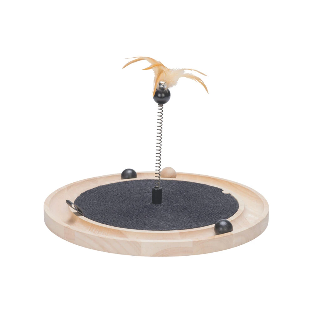 Das Designed by Lotte Kratzspielzeug Idah ist nicht einfach nur ein Spielzeug, es ist ein stilvoller Spielort, an dem sich Ihre Katze stundenlang amüsieren kann. Aus robustem Gummiholz gefertigt, fügt sich dieses Design perfekt in jedes Interieur ein. In der Mitte befindet sich eine Sisalmatte, an der Ihre Katze ihre Krallen schärfen kann. Das Besondere an dieser Matte ist, dass Sie darunter ein Säckchen Katzenminze verstecken können. Ideal für Katzen, die diesen Duft lieben! In der Mitte ist eine Sprungfeder mit einem Holzball und Feder befestigt, perfekt zum Jagen. Rundherum sind Holzbälle in einer Rille angebracht, die ins Rollen kommen, sobald Ihre Katze sie antippt. Und um Ihren Boden zu schützen, sind Filzsticker im Lieferumfang enthalten. Mit dem Kratzspielzeug Idah bieten Sie Ihrer Katze ein spannendes, interaktives Spielerlebnis und halten Ihr Interieur stilvoll.
