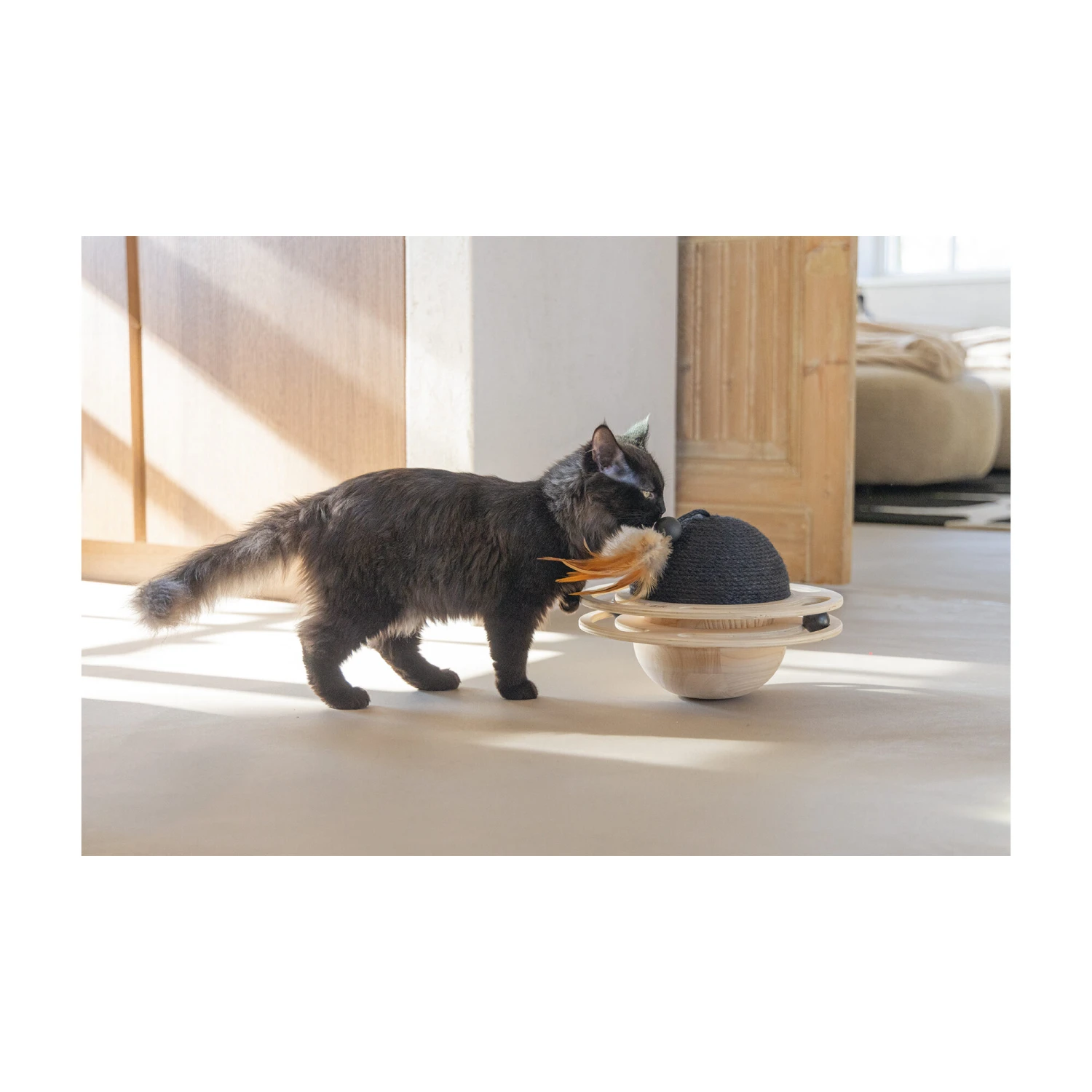Der Designed by Lotte Spielball Baya ist ein vielseitiges Katzenspielzeug, das Ihre Katze aktiv hält und bei der Nagelpflege hilft. Der Ball ist aus robustem Sperrholz gefertigt und mit Juteseil umwickelt, sodass Ihre Katze nach Herzenslust daran kratzen kann. Durch den runden Boden bewegt sich das Spielzeug in alle Richtungen, wenn Ihre Katze damit spielt – ideal für aktives und abwechslungsreiches Spielverhalten. Baya ist mehr als nur ein Kratzspielzeug. An der Oberseite befindet sich ein Seil mit einem Holzball und einer Feder, das den Jagdinstinkt Ihrer Katze anregt. Um den Ball herum gibt es einen Holzrahmen mit losen Spielfällen, die sich drehen, sobald Ihre Katze sie berührt. All dies macht Baya zu einem interaktiven, herausfordernden und attraktiven Spielzeug für jede verspielte Katze.