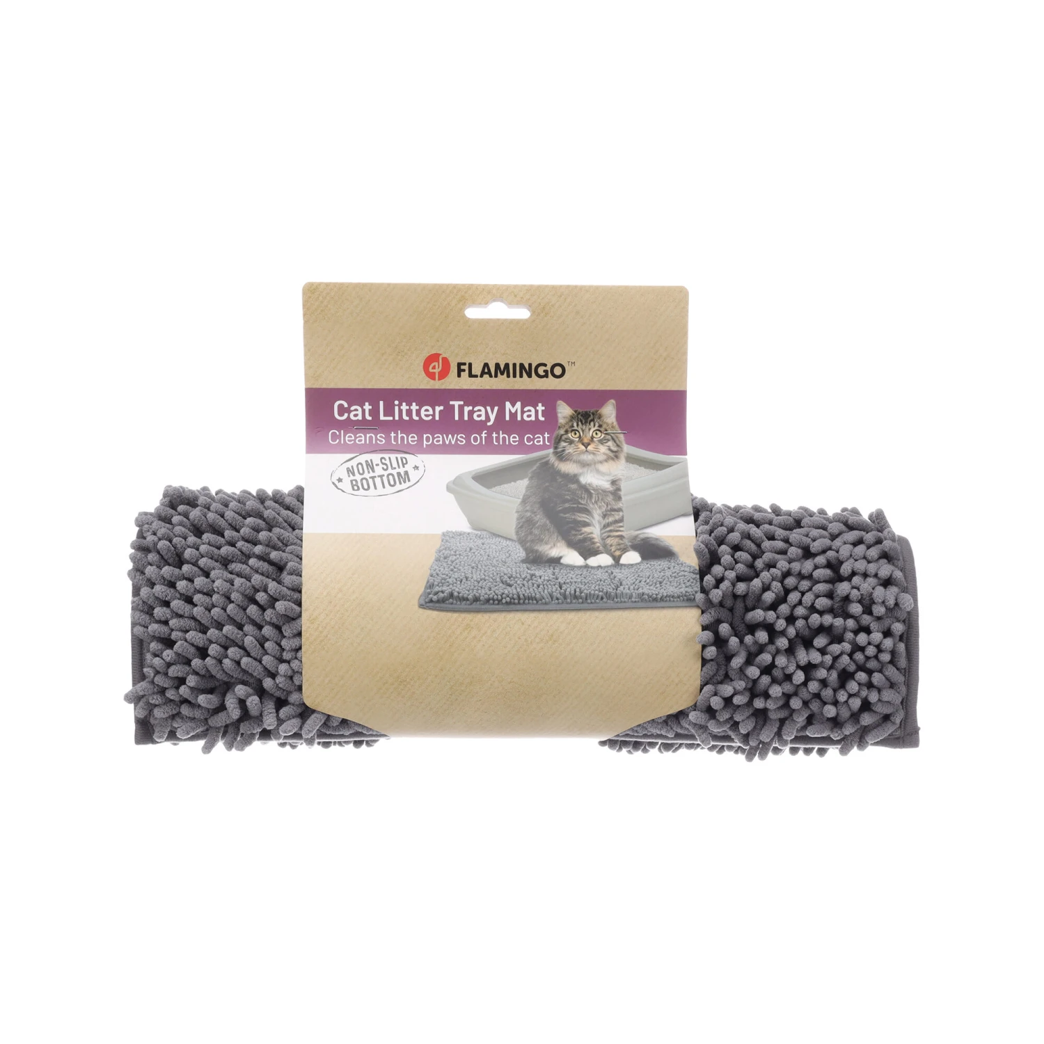 Die Flamingo Katzentoilettenmatte Rutt ist perfekt dazu geeignet, die Umgebung rund um die Katzentoilette sauber zu halten. Diese robuste, weiche Matte fängt Streu und Feuchtigkeit von den Pfoten Ihrer Katze auf, sodass Ihr Boden sauber und trocken bleibt. Die Matte passt nahezu zu jeder Katzentoilette und bietet Ihrer Katze eine komfortable Unterlage. Sie ist mit einer rutschfesten Unterseite ausgestattet und lässt sich leicht per Handwäsche reinigen.