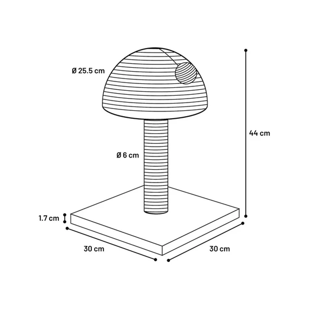 - Dicke der Grundplatte: 1,7 cm und Durchmesser des Kratzbaums: 6 cm