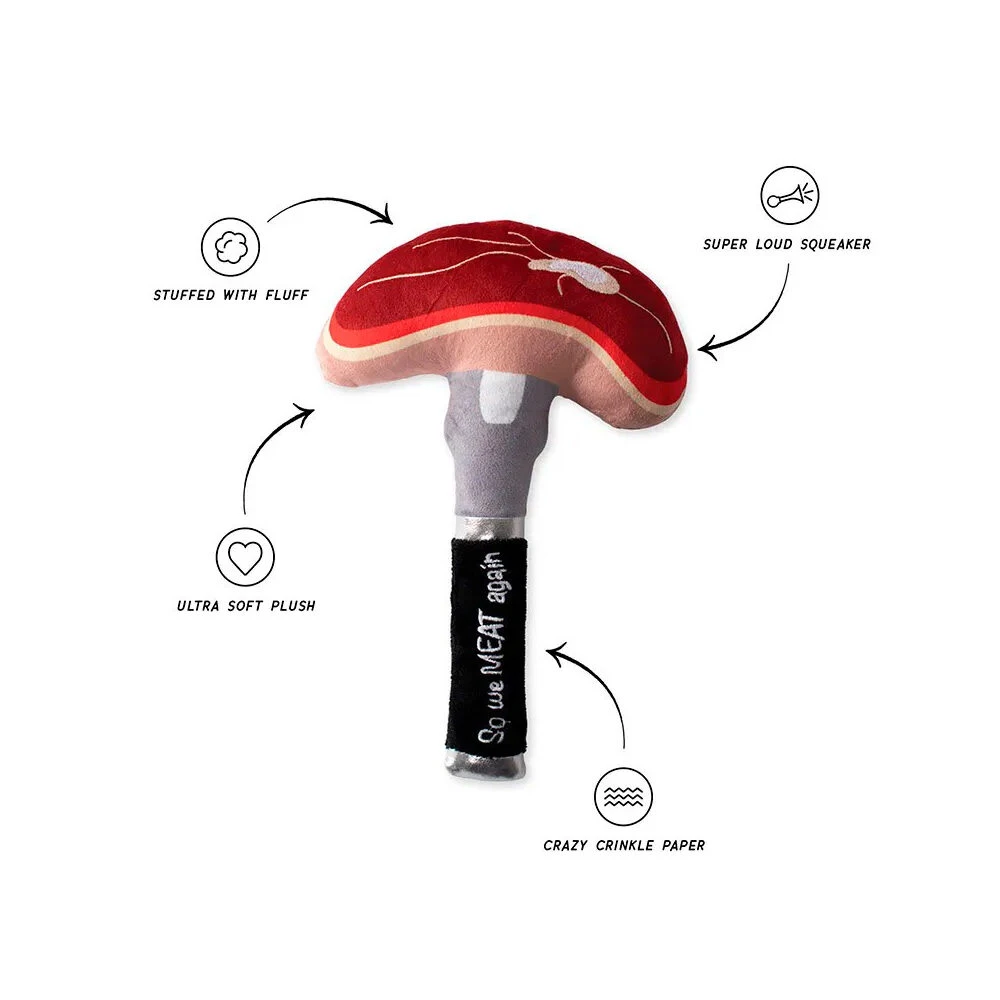 Der Fringe So We Meat Again ist ein verspieltes Hundespielzeug aus Plüsch, das für viel interaktiven Spaß sorgt. Die eingebaute Quietsche und das knisternde Material machen es besonders ansprechend, während das weiche Plüsch ideal ist für Kuschelmomente. Perfekt für Apportierspiele, gemeinsames Spielen oder zum selbstständigen Erkunden.