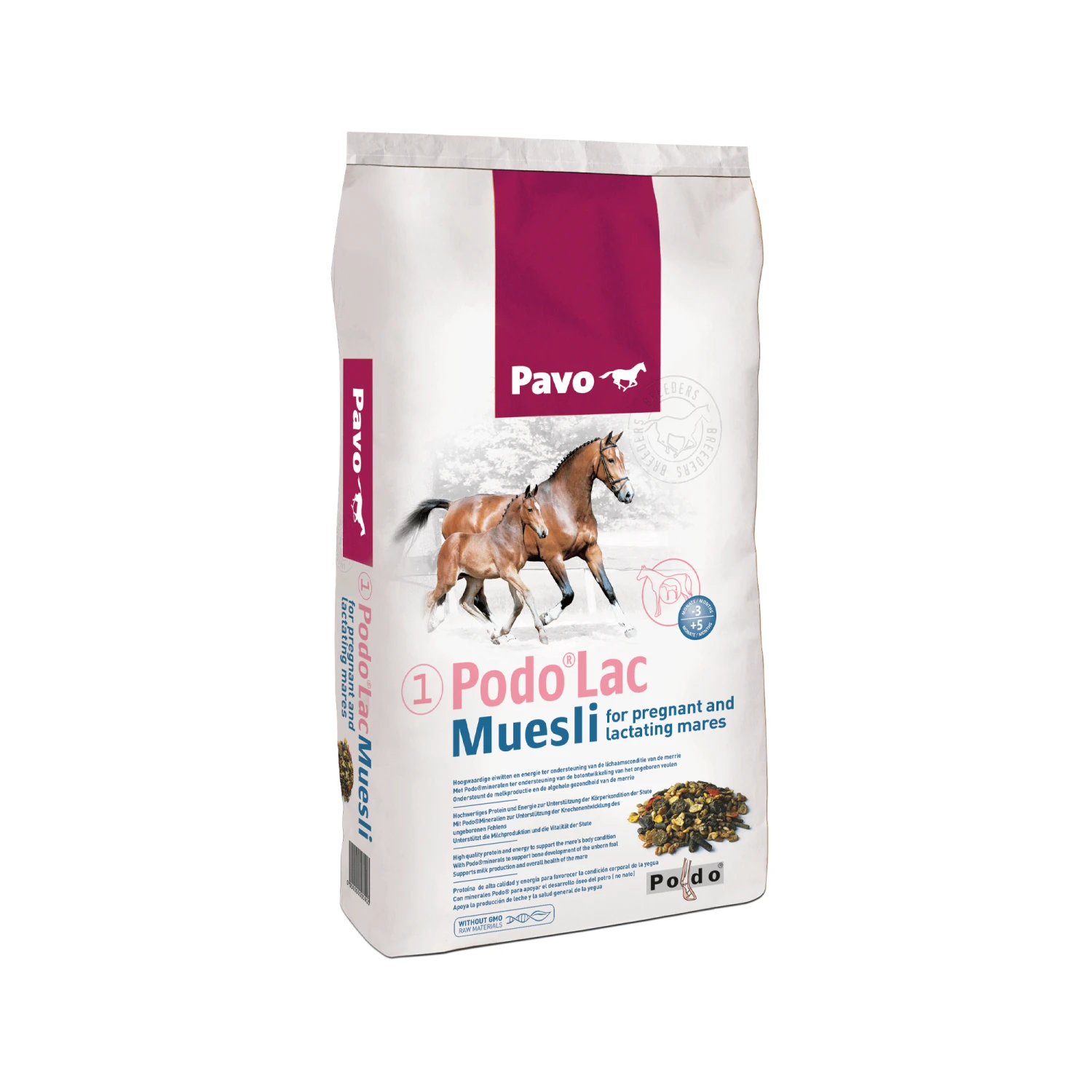 Tipp: Wenn Sie Ihrem Pferd weniger als die empfohlene Menge füttern möchten, können Sie eine halbe Dosis Pavo Podo Care verabreichen. Auf diese Weise erhalten sowohl Ihre Stute als auch Ihr Fohlen die notwendigen Nährstoffe. Pavo Podo Care kann auch für übergewichtige Stuten verwendet werden. Pavo Podo Lac Müsli gibt es auch in Form von Pellets. Pavo Podo Lac