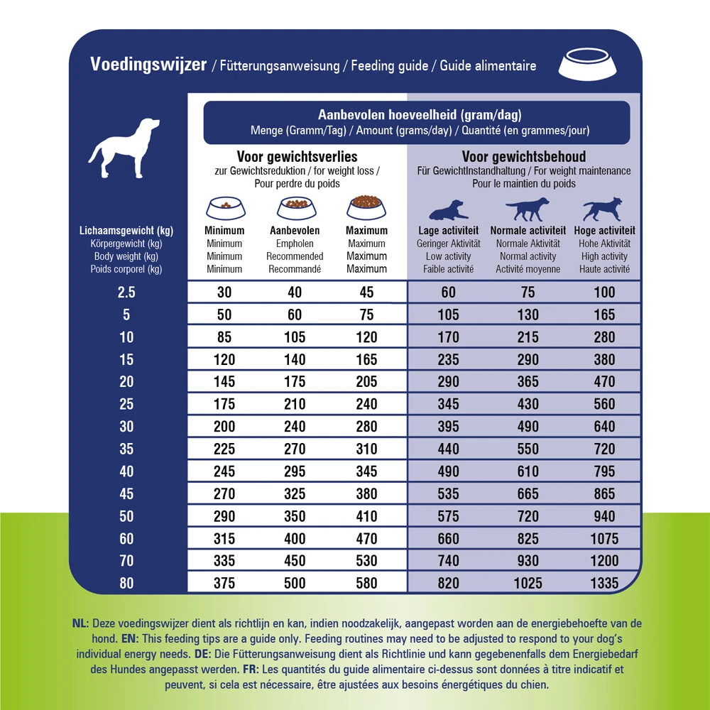 - Erwachsene Hunde, bis zu einem Alter von etwa 8 Jahren, mit Übergewicht und/oder Diabetes mellitus