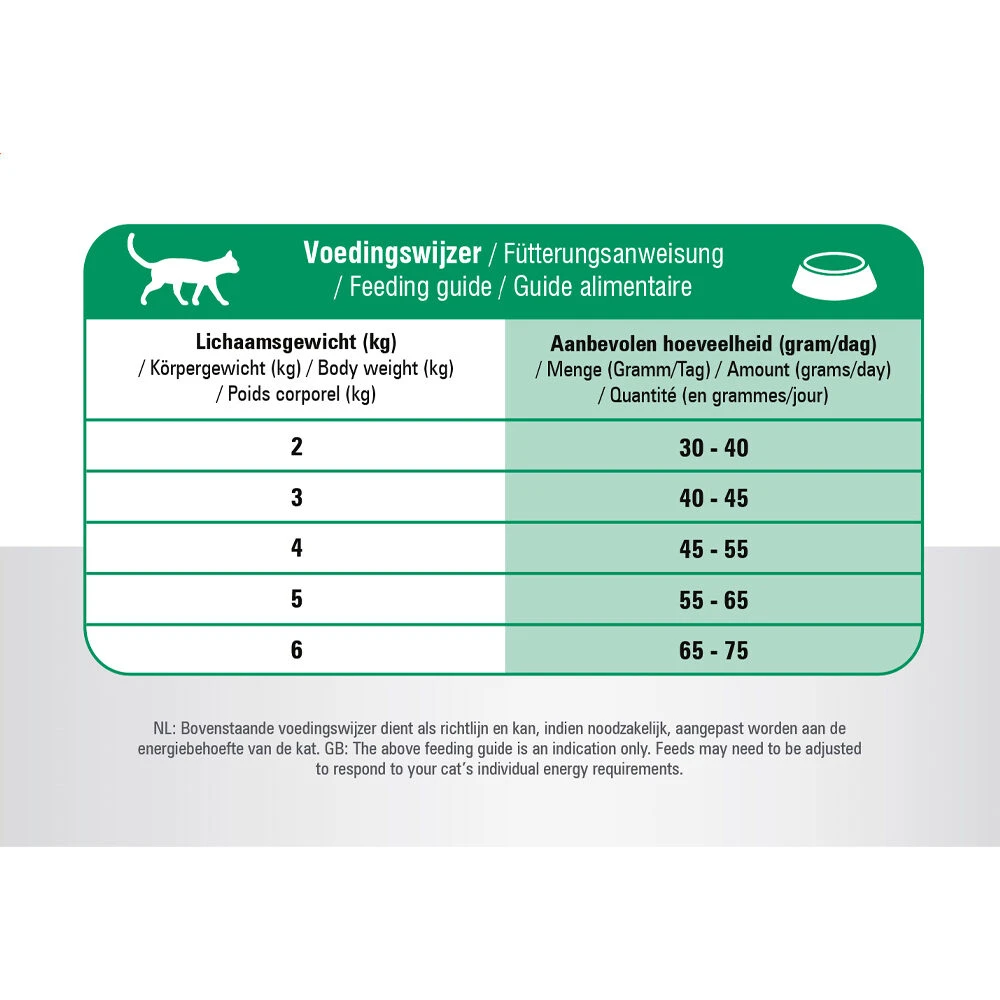 Mais, dehydriertes Geflügel, Maiskleber, tierische Fette (Geflügel, Rind), Reis, Volleipulver, Rübenschnitzel, Hühnerleberhydrolisat, Leinöl, Hefehydrolisat, Lachsöl (0,5%), Hefehydrolisat (Quelle von Beta-Glucanen) (500mg/kg), Fructo-Oligo-Saccharide (FOS)