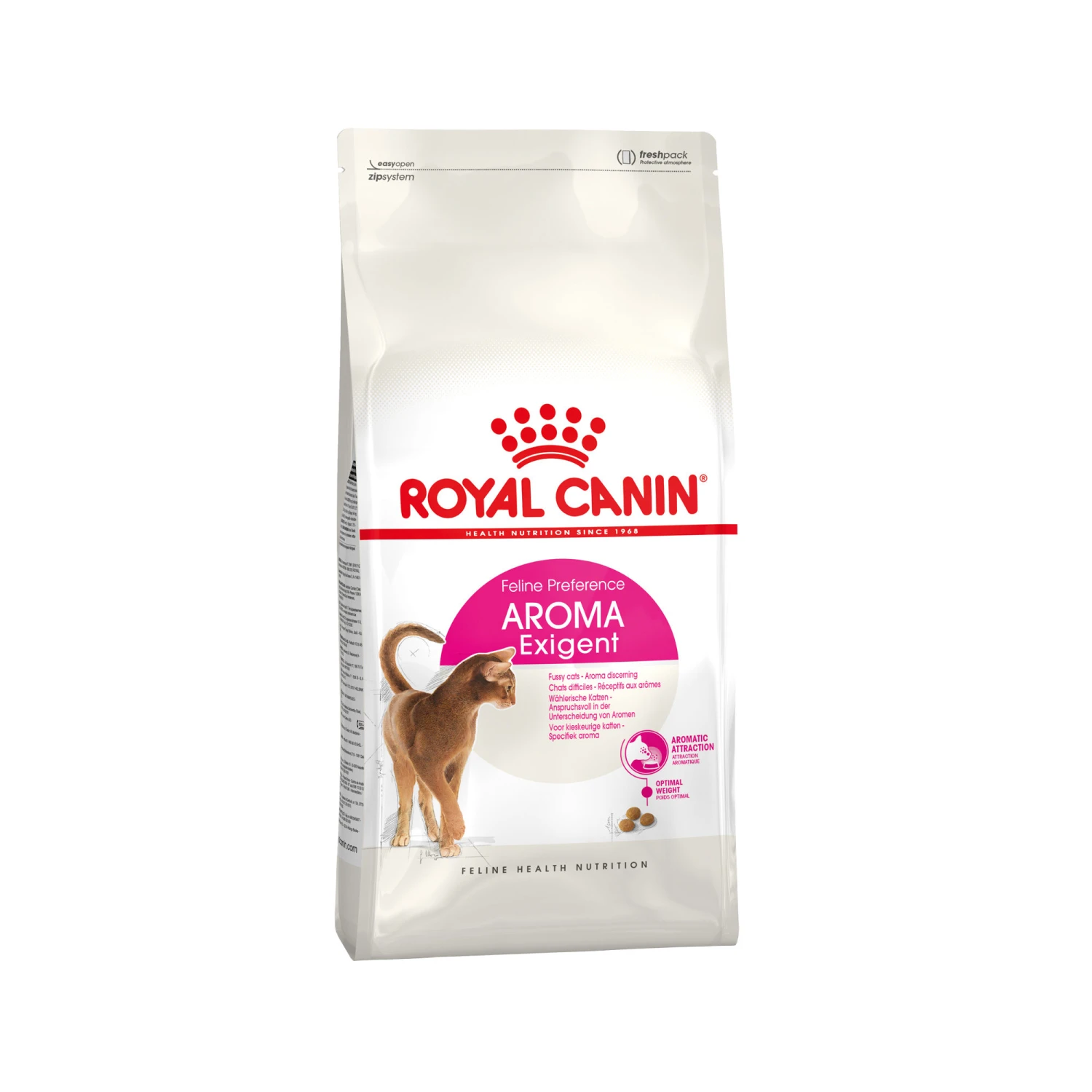 Ist Ihre Katze bei ihrem Futter sehr zurückhaltend oder gar wählerisch? Mithilfe von Royal Canin Aroma Exigent wird Ihre Katze ihr Futter wieder genießen können. Royal Canin Aroma Exigent ist ein spezielles Trockenfutter für wählerische, ausgewachsene Katzen, die sich ihr Futter nach dem Geruch auswählen. Das köstliche Trockenfutter ist besonders aromatisch. Deshalb finden auch Katzen mit verwöhnter Nase Geschmack daran. Das schmackhafte Katzenfutter enthält zudem einen angepassten Energiegehalt, um Ihre Katze bei idealem Gewicht zu halten. Die im Futter enthaltenen Öle sorgen für ein schönes, glänzendes Fell bei Ihrem Stubentiger.