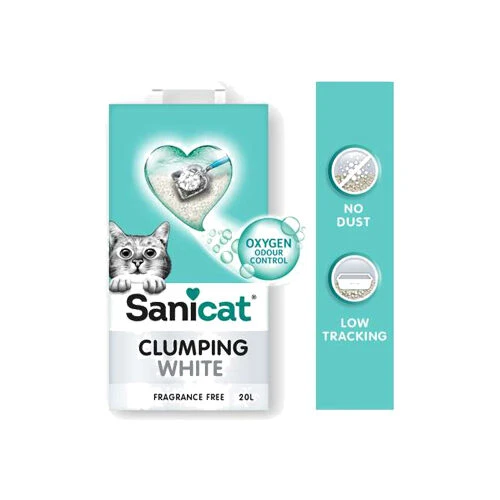 Sanicat Clumping White ist eine hochwertige, weiße, klumpende Katzenstreu mit Sauerstoff. Die Füllung neutralisiert unangenehme Gerüche und sorgt für zusätzliche Hygiene. Dies gewährleistet eine täglich saubere und frische Katzentoilette. Diese Katzenstreu klumpt gut und kann daher einfach ausgetauscht werden.